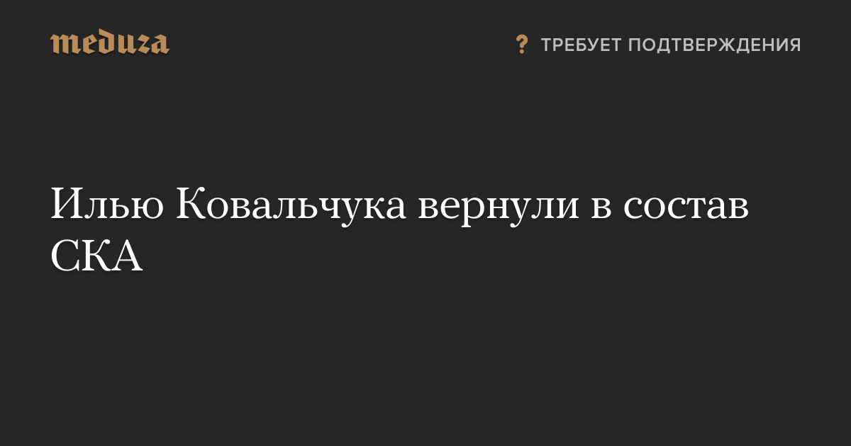 Руководство хоккейного клуба СКА вернуло Илью Ковальчука в состав. Об этом заявил источник, официально информация не подтверждена.