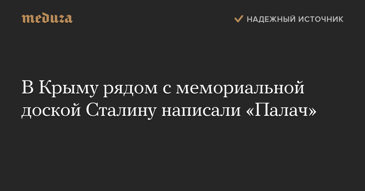 В Крыму рядом с мемориальной доской Иосифу Сталину на стене написали слово «Палач». Как рассказали в крымском республиканском комитете КПРФ, это произошло в ночь на 6 марта.
