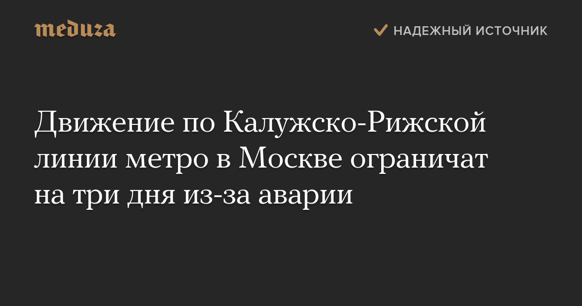 Движение по Калужско-Рижской линии метро в Москве ограничат на три дня из-за аварии