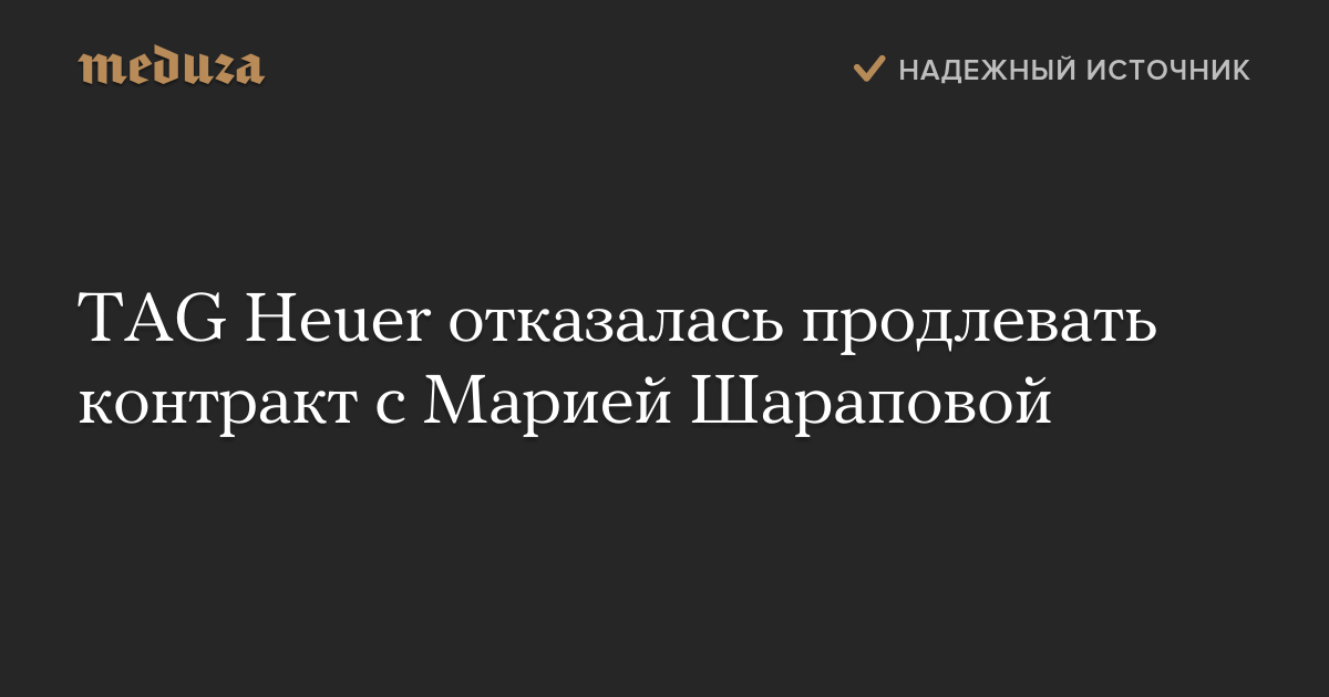 Швейцарская часовая компания TAG Heuer не будет продлевать рекламный контракт с Марией Шараповой, признавшейся в употреблении допинга.