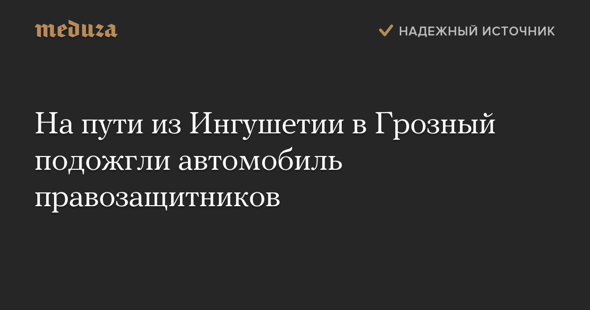 На пути из Ингушетии в Грозный подожгли автомобиль правозащитников