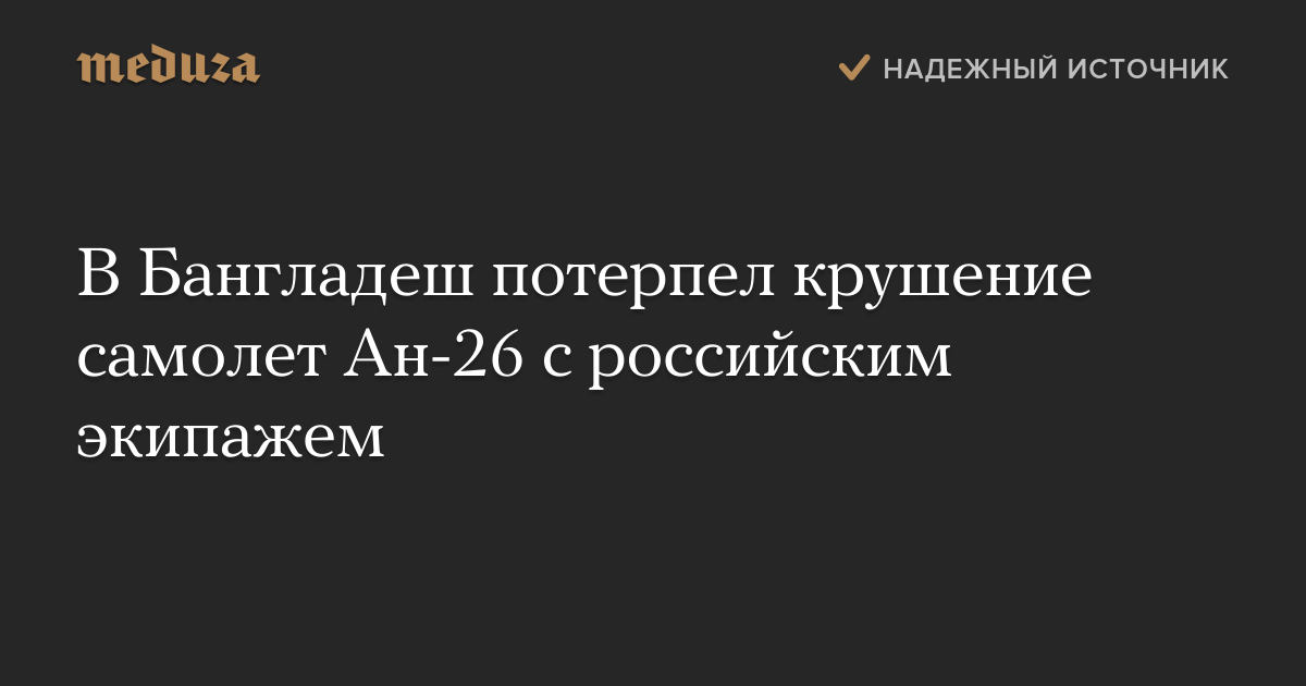 В Бангладеш потерпел крушение самолет Ан-26 с российским экипажем