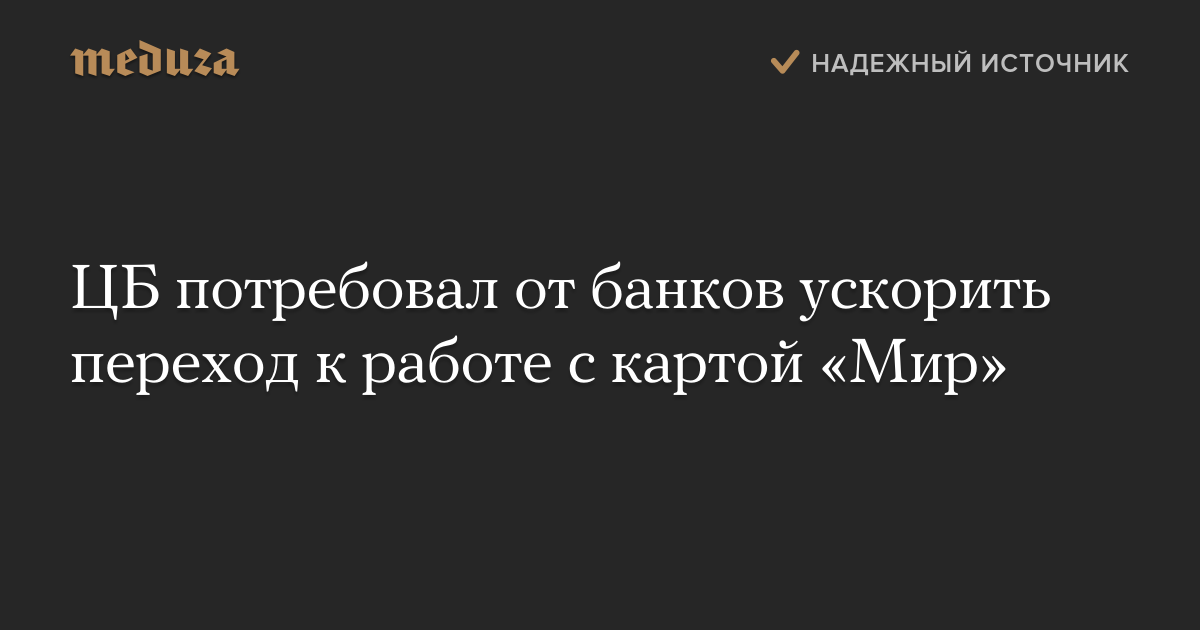 В письме, копия которого есть в распоряжении газеты, ЦБ напоминает банкам о необходимости выполнять закон, а именно обеспечить прием карт «Мир» всеми торговыми точками, находящимися на их эквайринговом обслуживании, а также выдавать такие карты клиентам при получении ими выплат за счет средств бюджетов и государственных внебюджетных фондов.