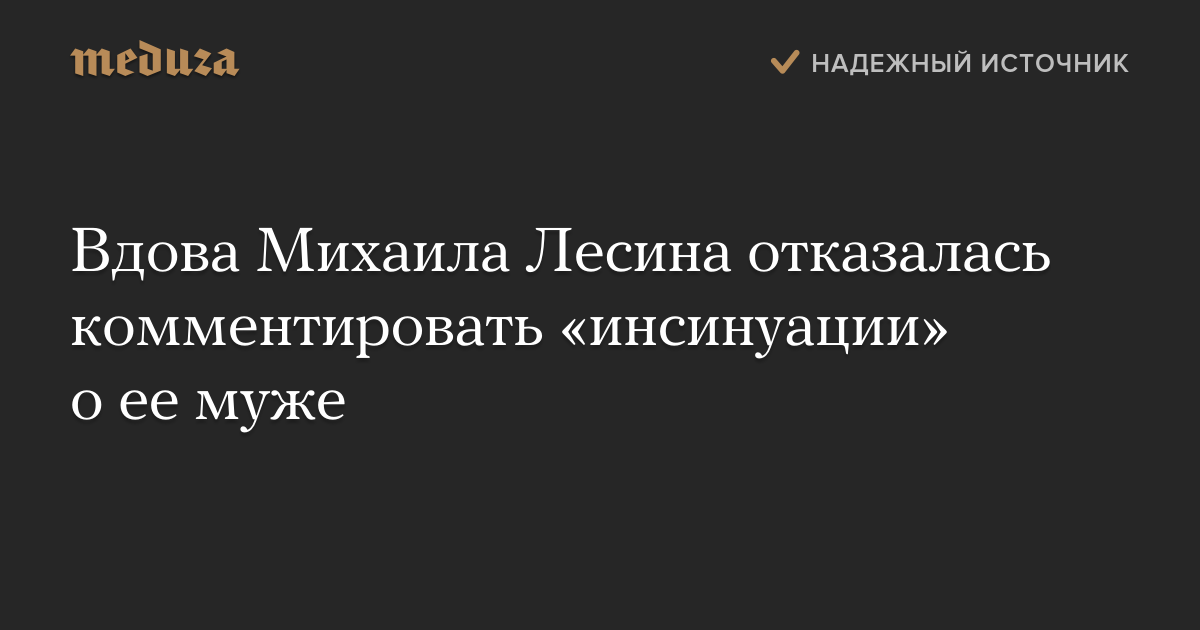 Вдова Михаила Лесина назвала инсинуациями предположения о том, что ее супруг пересекал границу США после официального сообщения о его смерти. Валентина Лесина заявила «Газете.ру», что «комментировать разного рода инсинуации считает ниже своего достоинства и недостойным памяти ее мужа».