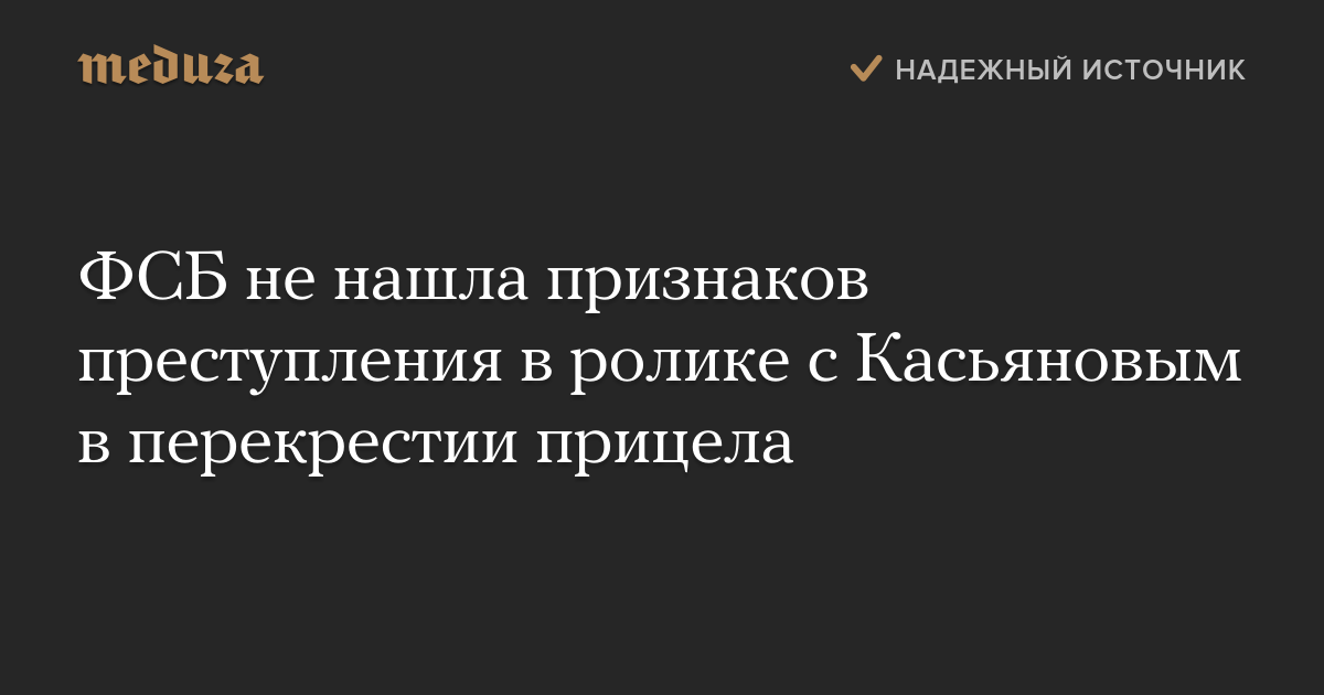 ФСБ не нашла признаков преступления в ролике с Касьяновым в перекрестии прицела