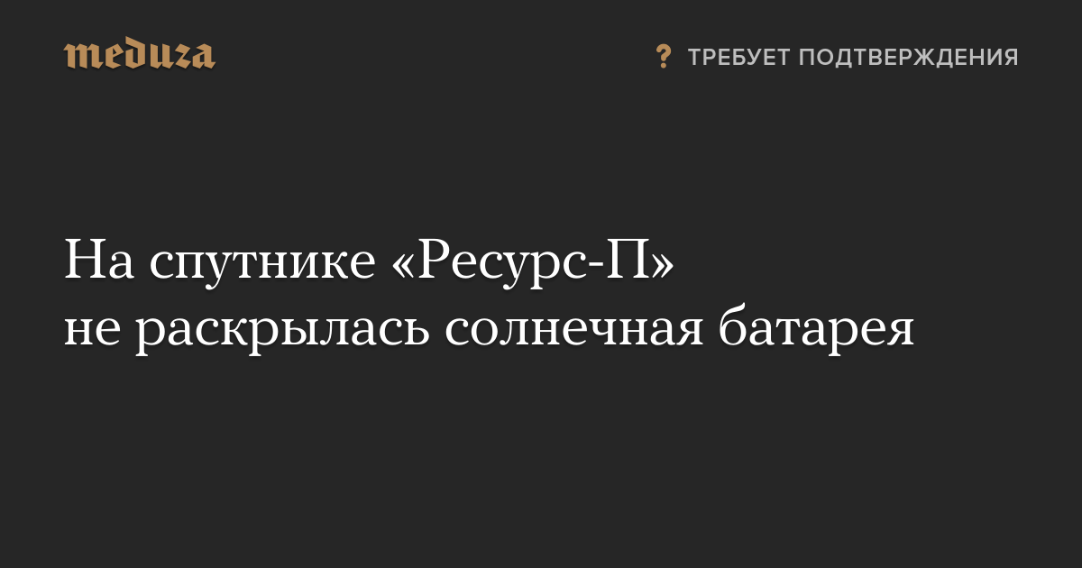 На спутнике дистанционного зондирования Земли «Ресурс-П», запущенном 13 марта, не раскрылась одна из двух солнечных батарей, сообщил «Интерфаксу» источник в ракетно-космической отрасли.