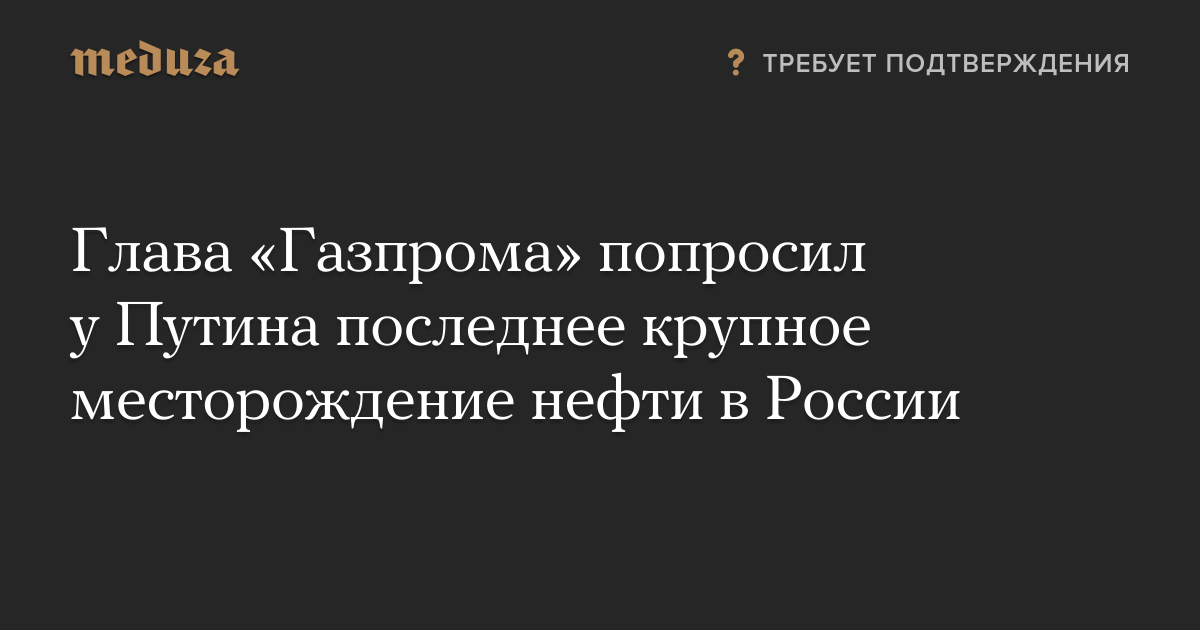 Глава «Газпрома» попросил у Путина последнее крупное месторождение нефти в России