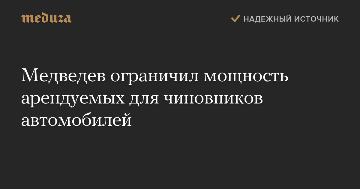 Медведев ограничил мощность арендуемых для чиновников автомобилей