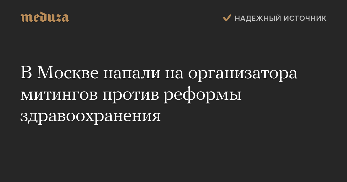 В Москве вечером 17 марта совершено нападение на активистку Аллу Фролову, организатора митингов против реформы московской системы здравоохранения в 2014 году. Об этом сообщает «ОВД-Инфо».