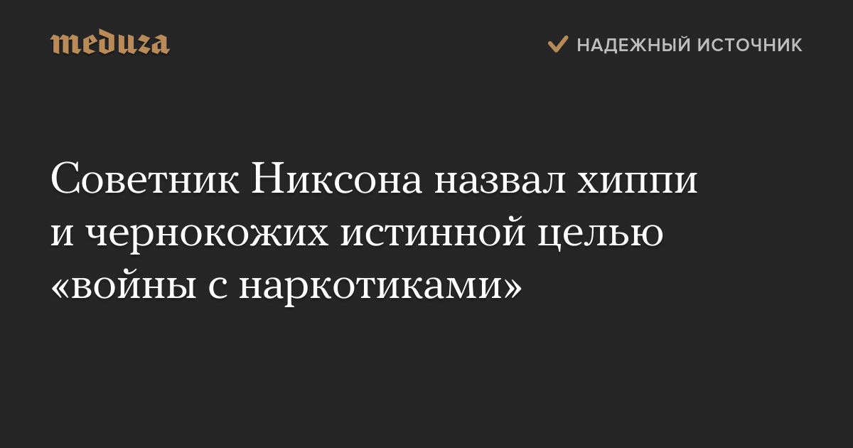 Советник Никсона назвал хиппи и чернокожих истинной целью «войны с наркотиками»