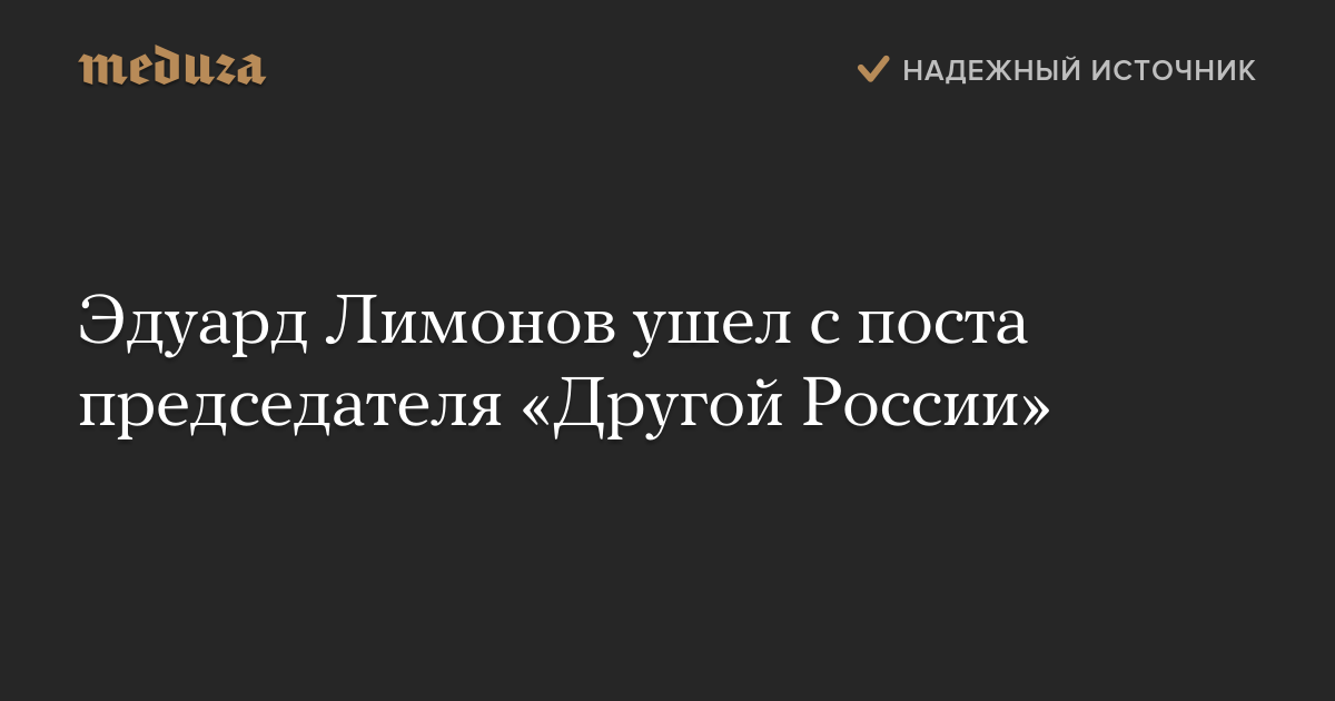 Лидер «Другой России» Эдуард Лимонов ушел с поста председателя партии. Свое решение он объяснил ухудшением здоровья. Исполняющими обязанности руководителя партии назначены многолетние соратники Лимонова: Алексей Волынец, Александр Аверин и Андрей Дмитриев.