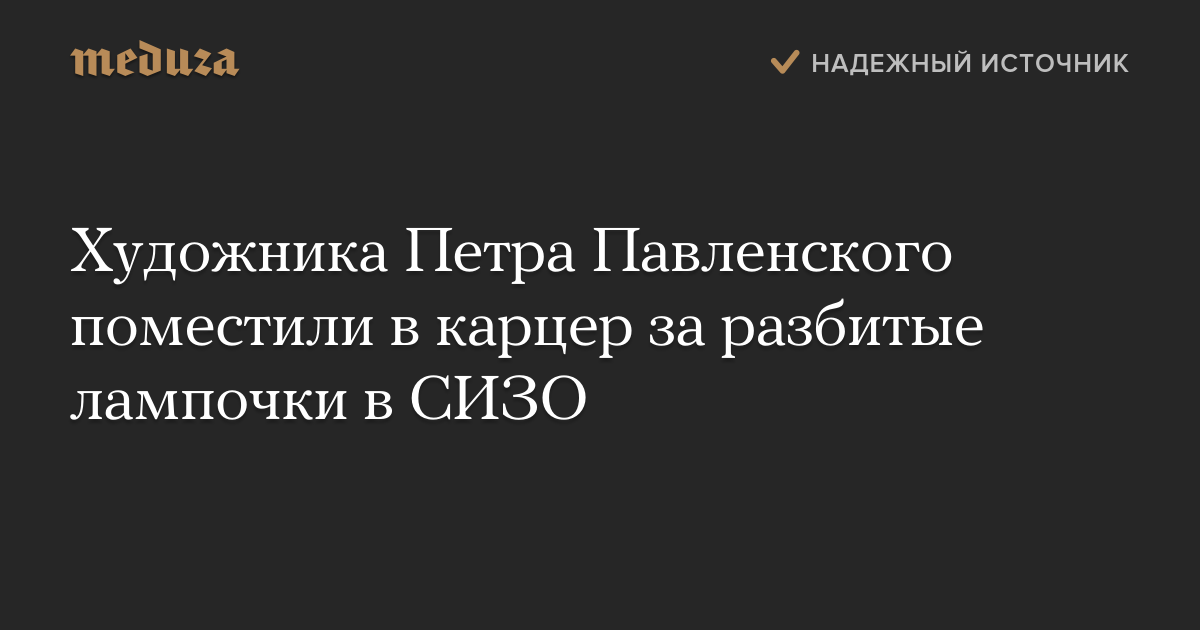 Художника Петра Павленского поместили в карцер за разбитые лампочки в СИЗО