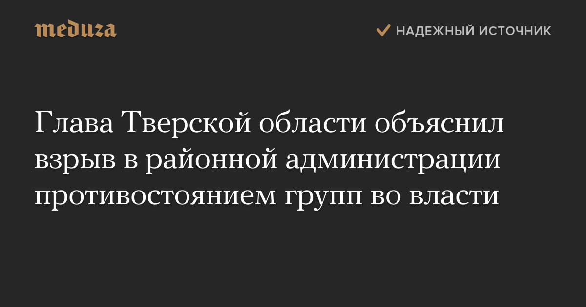 Глава Тверской области объяснил взрыв в районной администрации противостоянием групп во власти