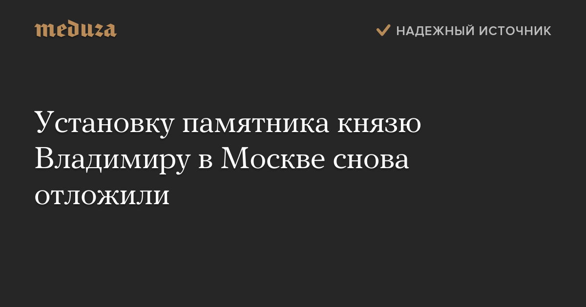 Сроки установки памятника князю Владимиру в Москве перенесены, сообщил автор памятника Салават Щербаков.