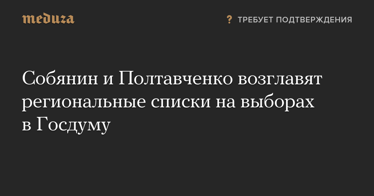 Собянин и Полтавченко возглавят региональные списки на выборах в Госдуму