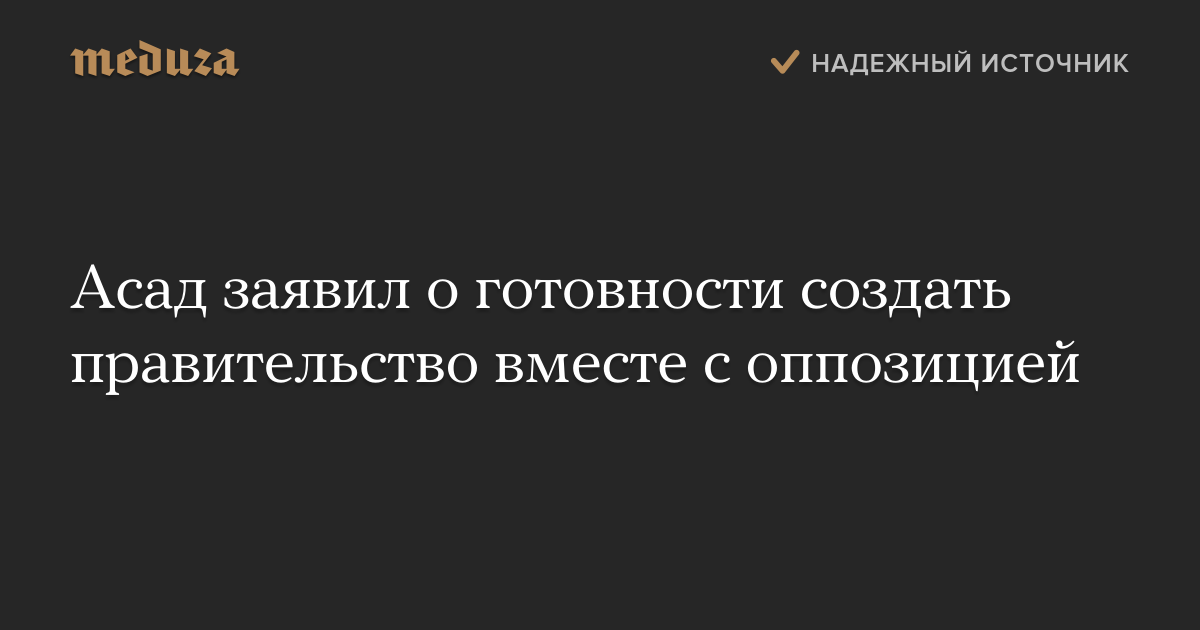 Асад заявил о готовности создать правительство вместе с оппозицией