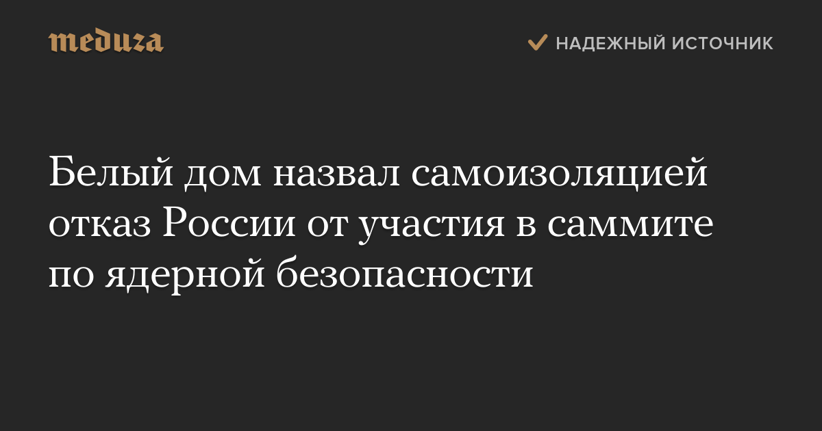 Белый дом назвал самоизоляцией отказ России от участия в саммите по ядерной безопасности