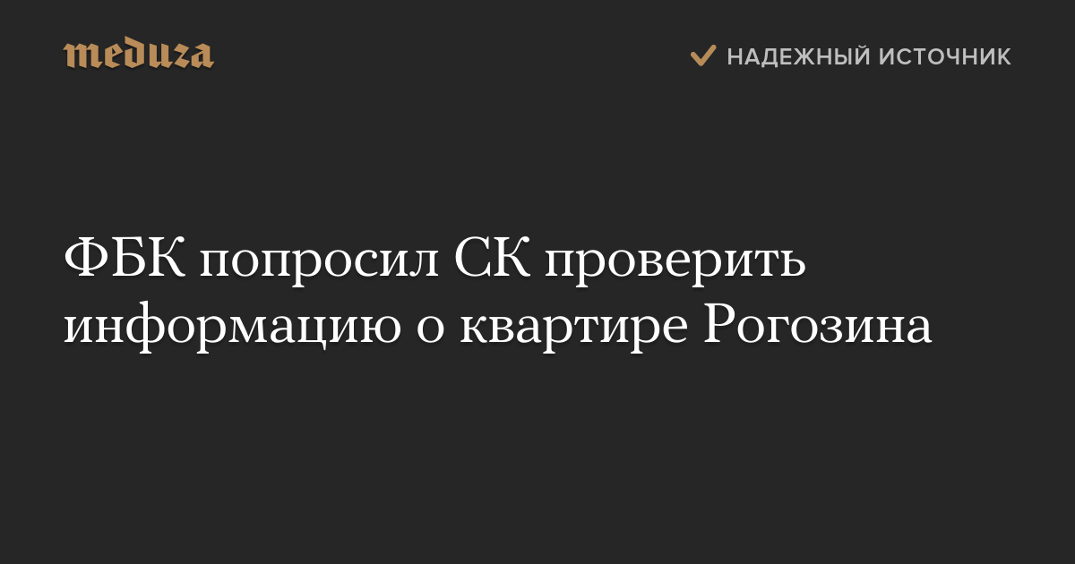 ФБК попросил СК проверить информацию о квартире Рогозина