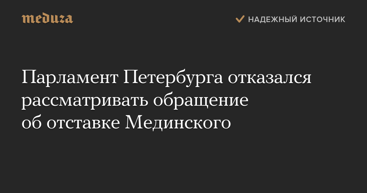 Парламент Петербурга отказался рассматривать обращение об отставке Мединского