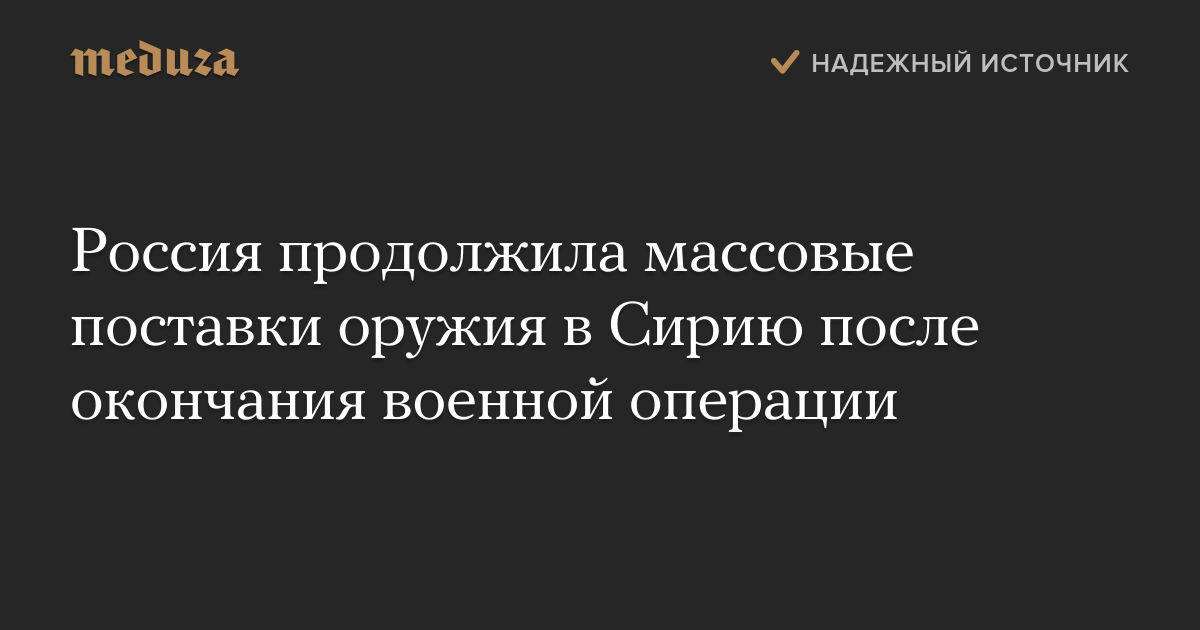 Россия продолжила массовые поставки оружия в Сирию после окончания военной операции