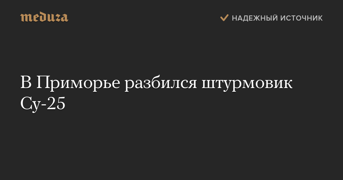 В Приморском крае во время посадки на аэродром Черниговка потерпел крушение самолет Су-25, сообщает «Интерфакс» со ссылкой на управление пресс-службы и информации Минобороны России.
