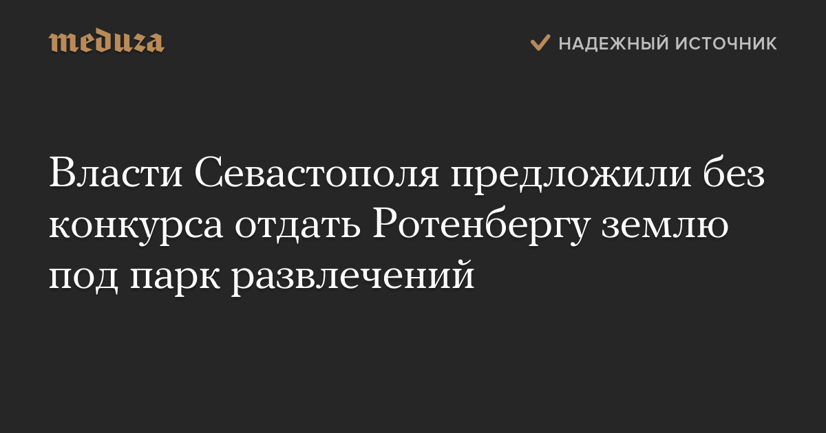 Власти Севастополя предложили без конкурса отдать Ротенбергу землю под парк развлечений