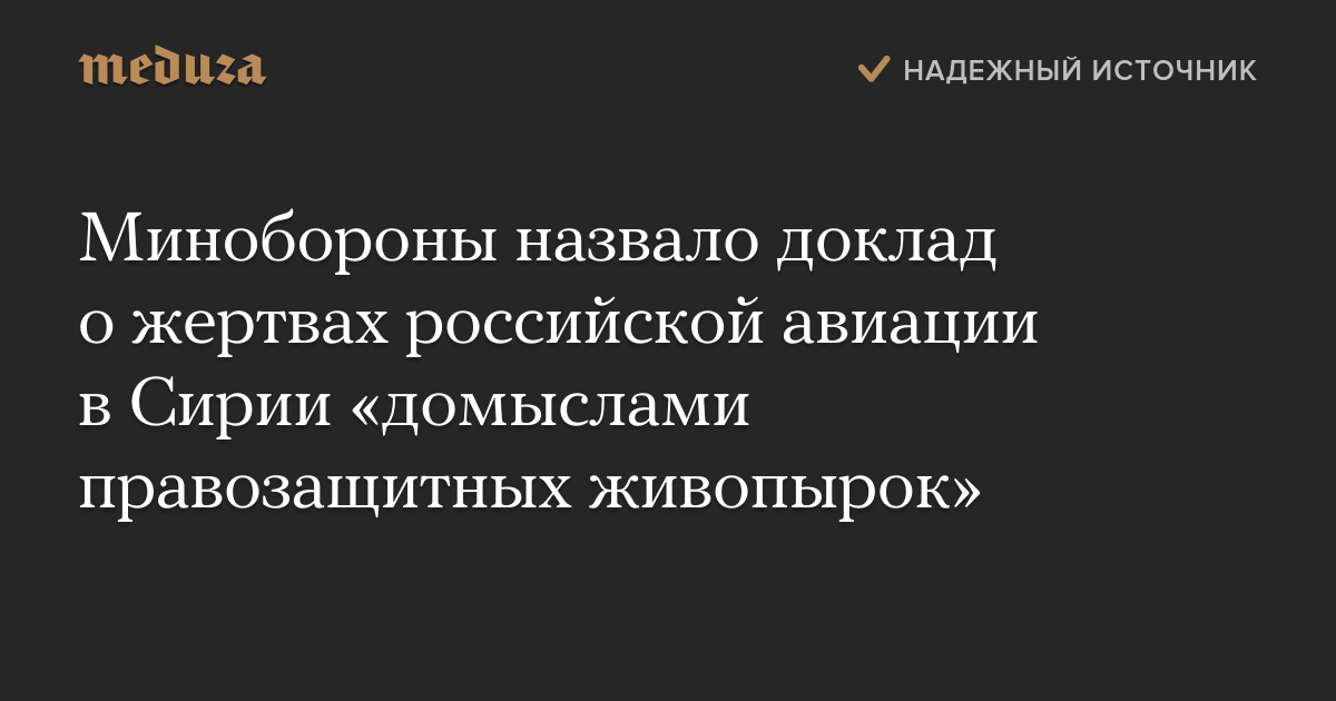 Минобороны назвало доклад о жертвах российской авиации в Сирии «домыслами правозащитных живопырок»