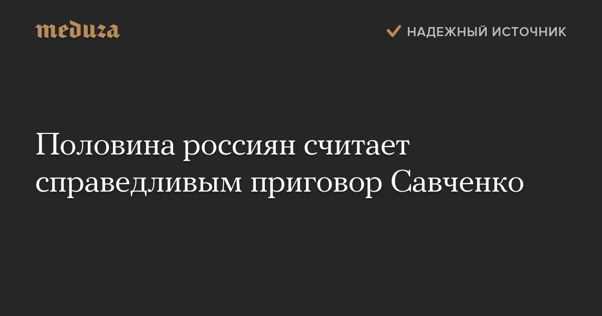 Приговор украинской военнослужащей Надежде Савченко был справедливым и объективным, считает 51 процент россиян. Это следует из опроса, проведенного «Левада-центром».