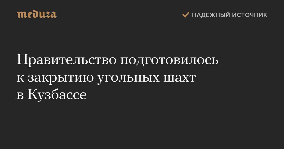 Правительство подготовилось к закрытию угольных шахт в Кузбассе