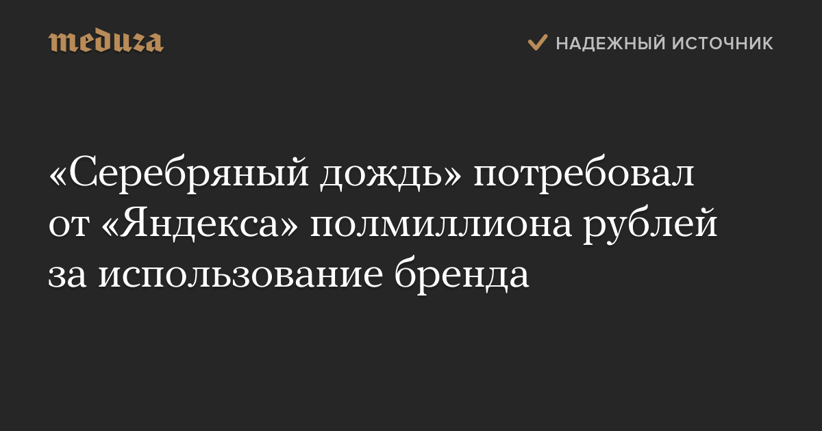 «Серебряный дождь» потребовал от «Яндекса» полмиллиона рублей за использование бренда