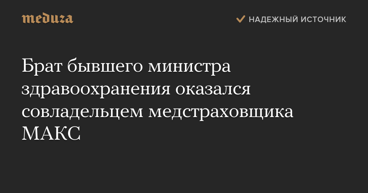 Брат бывшего министра здравоохранения оказался совладельцем медстраховщика МАКС