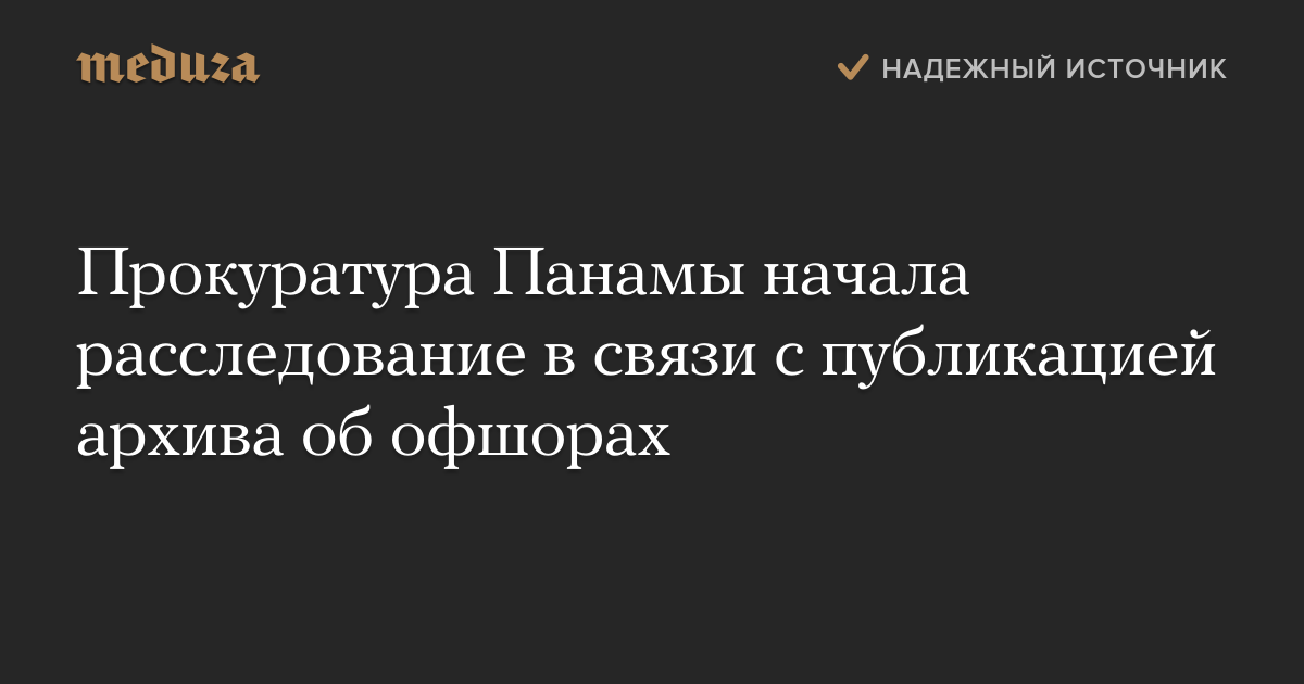 Что это за сообщение и почему оно повсюду на «Медузе»?Прокуратура Панамы начала расследование после публикации «панамского архива». Об этом говорится в заявлении ведомства.