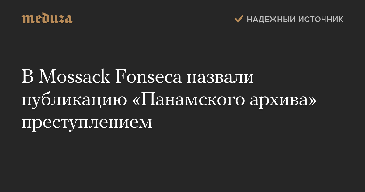 Что это за сообщение и почему оно повсюду на «Медузе»?Публикация «Панамского архива» — подборки документов об офшорных схемах — является «уголовным преступлением», заявил сооснователь юридической фирмы Mossack Fonseca Рамон Фонсека.