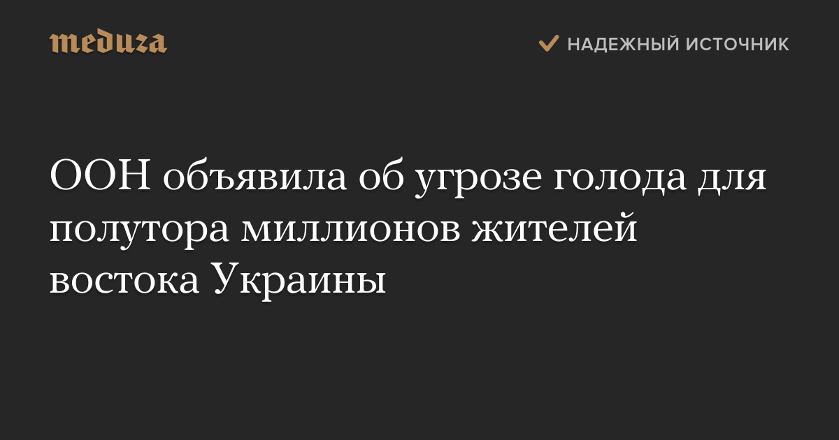 ООН объявила об угрозе голода для полутора миллионов жителей востока Украины