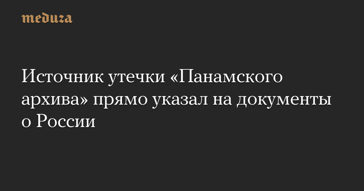 Источник утечки «Панамского архива» прямо указал на документы о России