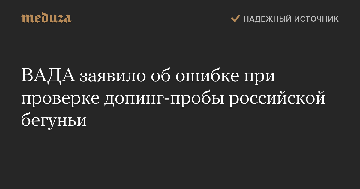 ВАДА заявило об ошибке при проверке допинг-пробы российской бегуньи