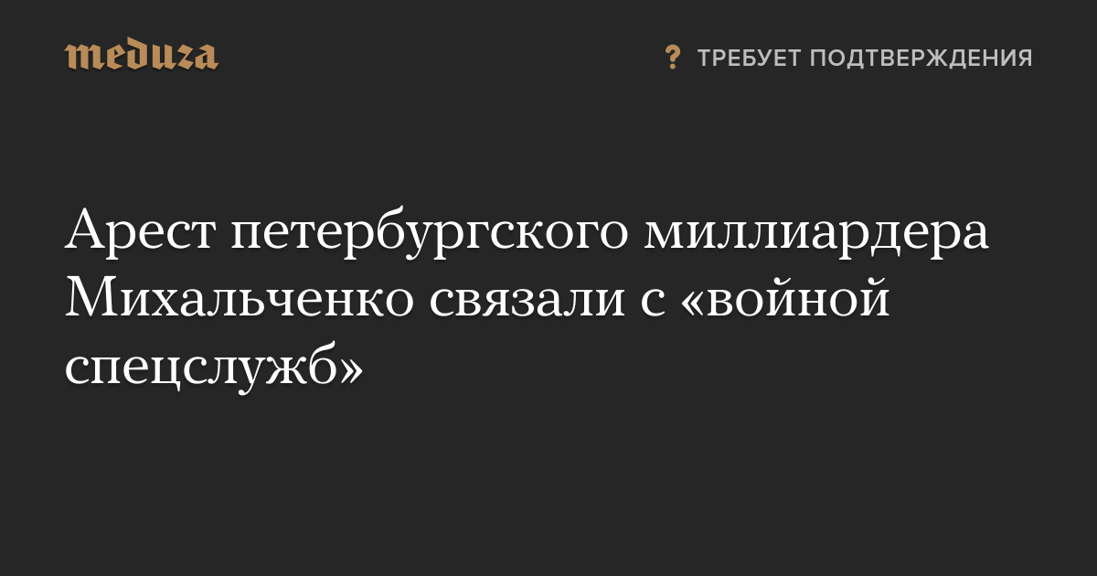 Арест петербургского миллиардера Михальченко связали с «войной спецслужб»