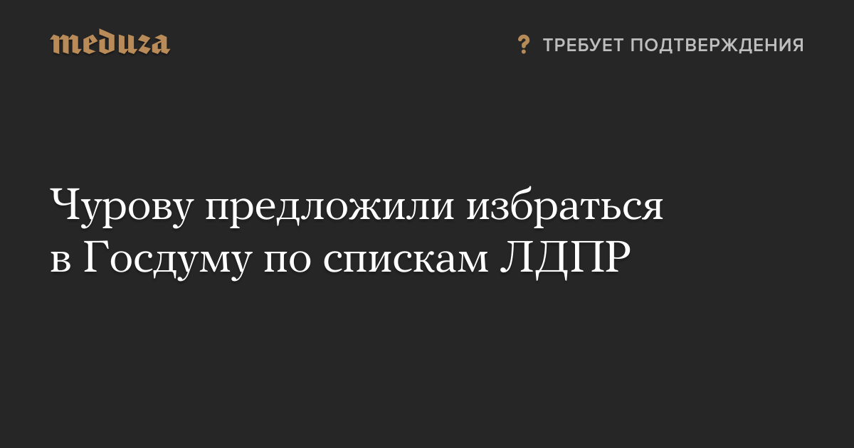 Пока Чуров не дал окончательного ответа, пишет издание. Кроме того, неизвестно, даст ли согласие на включение Чурова в федеральный список ЛДПР лидер партии Владимир Жириновский. Однако источники «Газеты.Ru», близкие к администрации президента, не сомневаются в том, что Жириновский ответит согласием, в случае, если его «настоятельно попросят».