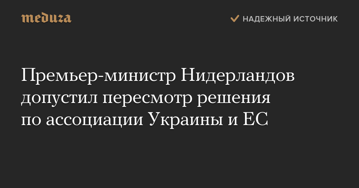 Премьер-министр Нидерландов допустил пересмотр решения по ассоциации Украины и ЕС