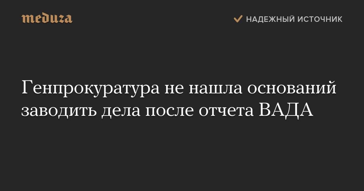 Генпрокуратура не нашла оснований заводить дела после отчета ВАДА