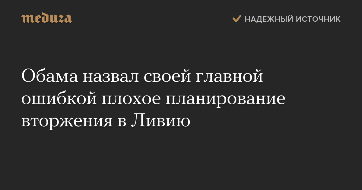 Обама назвал своей главной ошибкой плохое планирование вторжения в Ливию