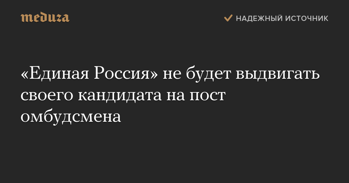 «Единая Россия» не будет выдвигать своего кандидата на пост омбудсмена
