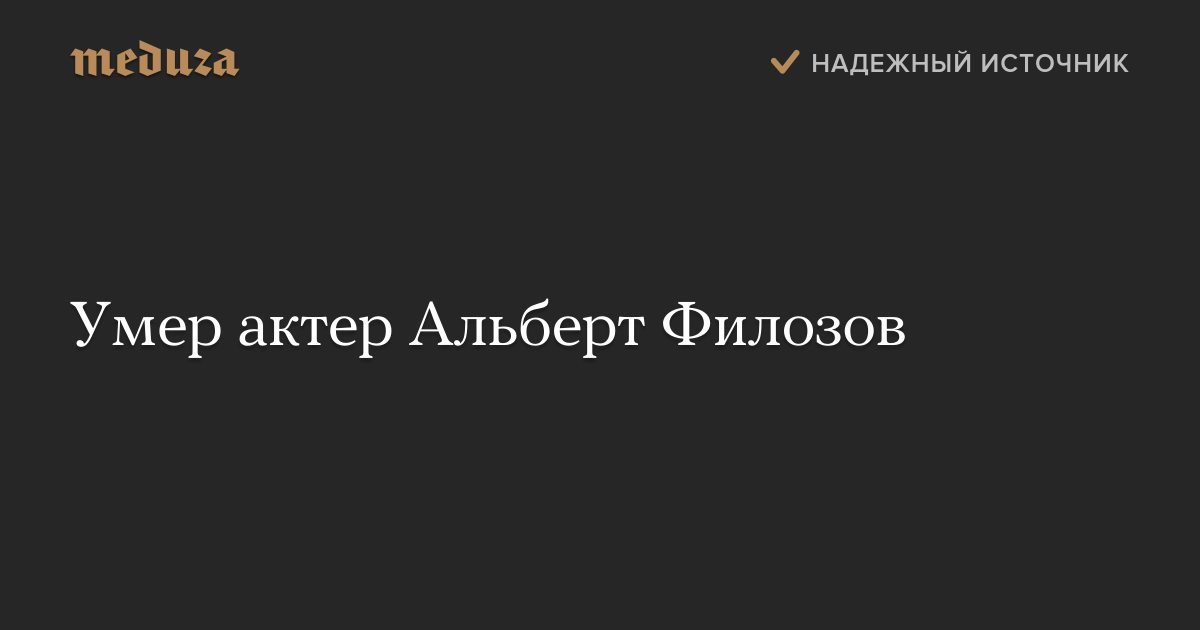 В Москве 11 апреля на 79-м году жизни умер актер, народный артист РФ Альберт Филозов. Об этом сообщили в театре «Школа современной пьесы».