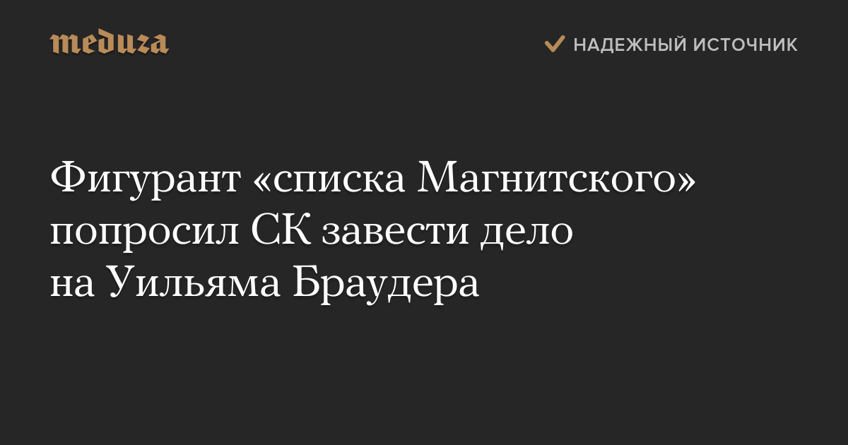 Фигурант «списка Магнитского» попросил СК завести дело на Уильяма Браудера