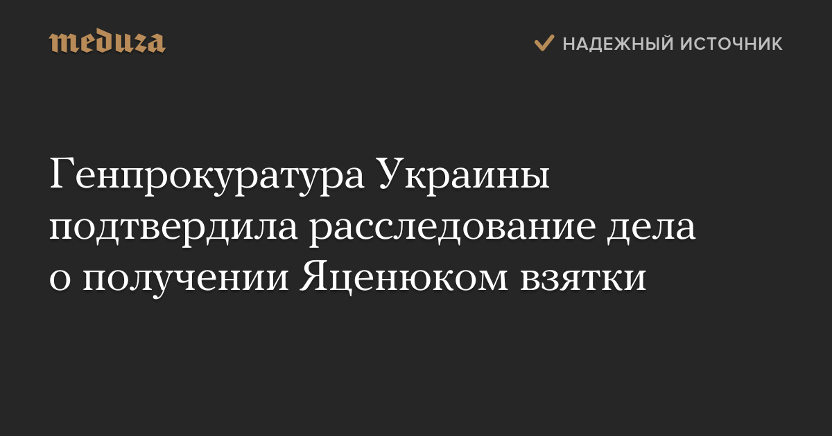 Генеральная прокуратура Украины подтвердила, что проводит расследование о получении премьер-министром Украины Арсением Яценюком взятки. Соответствующий ответ на запрос депутата Верховной Рады Дмитрия Добродомова опубликован на сайте движения «Народный контроль».