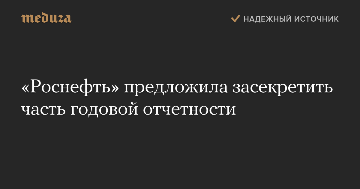«Роснефть» предложила засекретить часть годовой отчетности