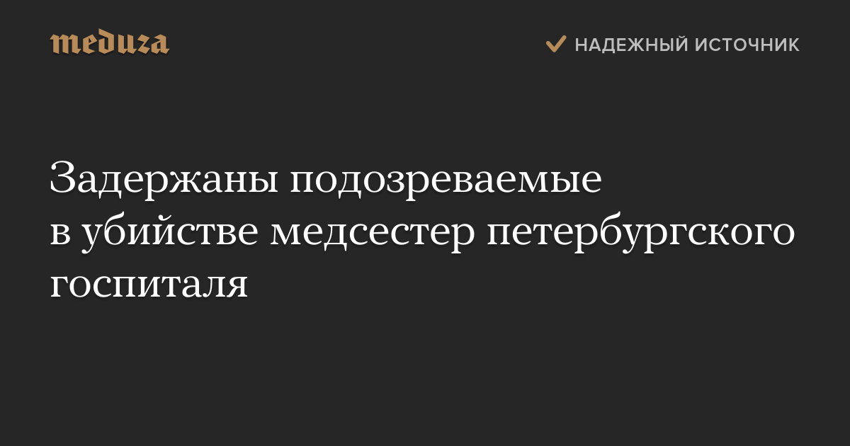 Задержаны подозреваемые в убийстве медсестер петербургского госпиталя