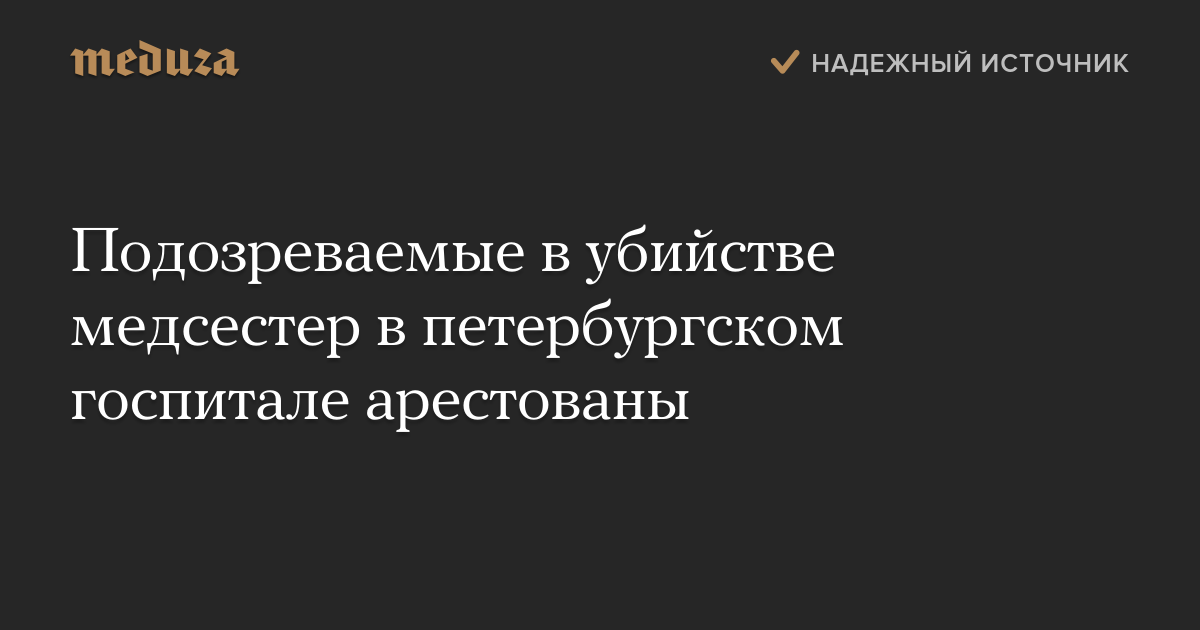 Подозреваемые в убийстве медсестер в петербургском госпитале арестованы