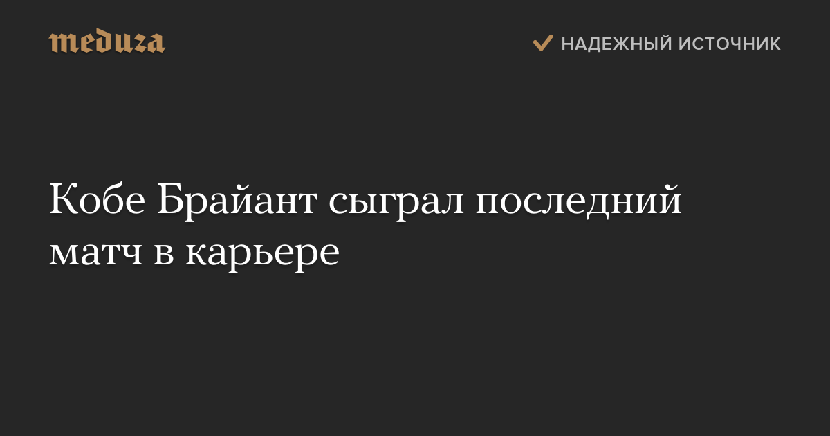 Атакующий защитник клуба Национальной баскетбольной ассоциации «Лос-Анджелес Лейкерс» Кобе Брайант провел 13 апреля последний матч в карьере.