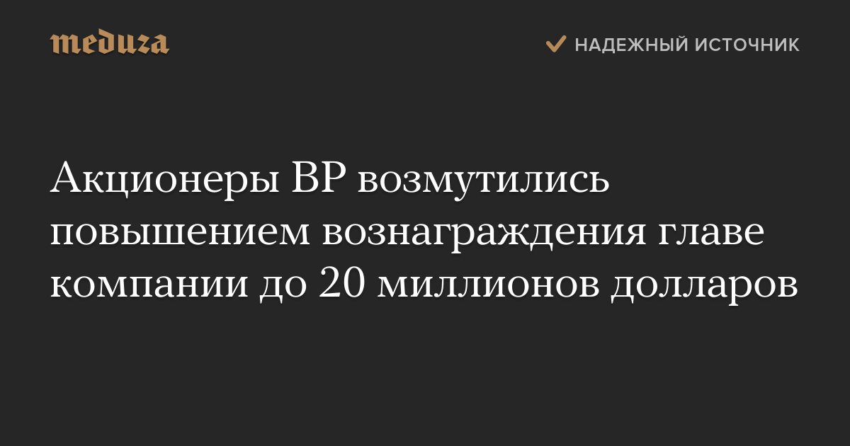 Акционеры BP возмутились повышением вознаграждения главе компании до 20 миллионов долларов